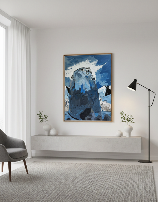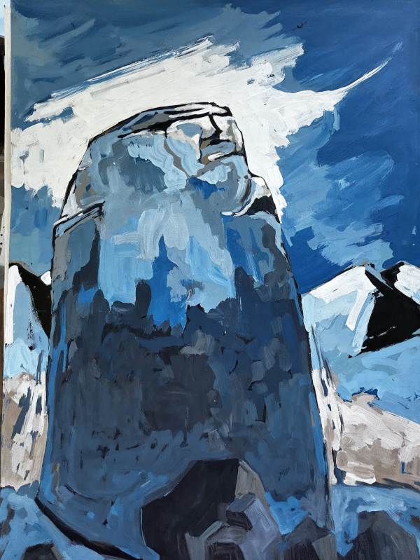Como pintor, esta obra nace de la necesidad de capturar el momento exacto en que la luz del amanecer golpea un pico inalcanzable. El cuadro narra la historia de la permanencia. Mientras el mundo abajo es caótico y efímero, este gigante de piedra permanece impasible. Las pinceladas gruesas y decididas no buscan la perfección fotográfica, sino la verdad emocional de la materia: la dureza de la roca contra la volatilidad de las nubes.